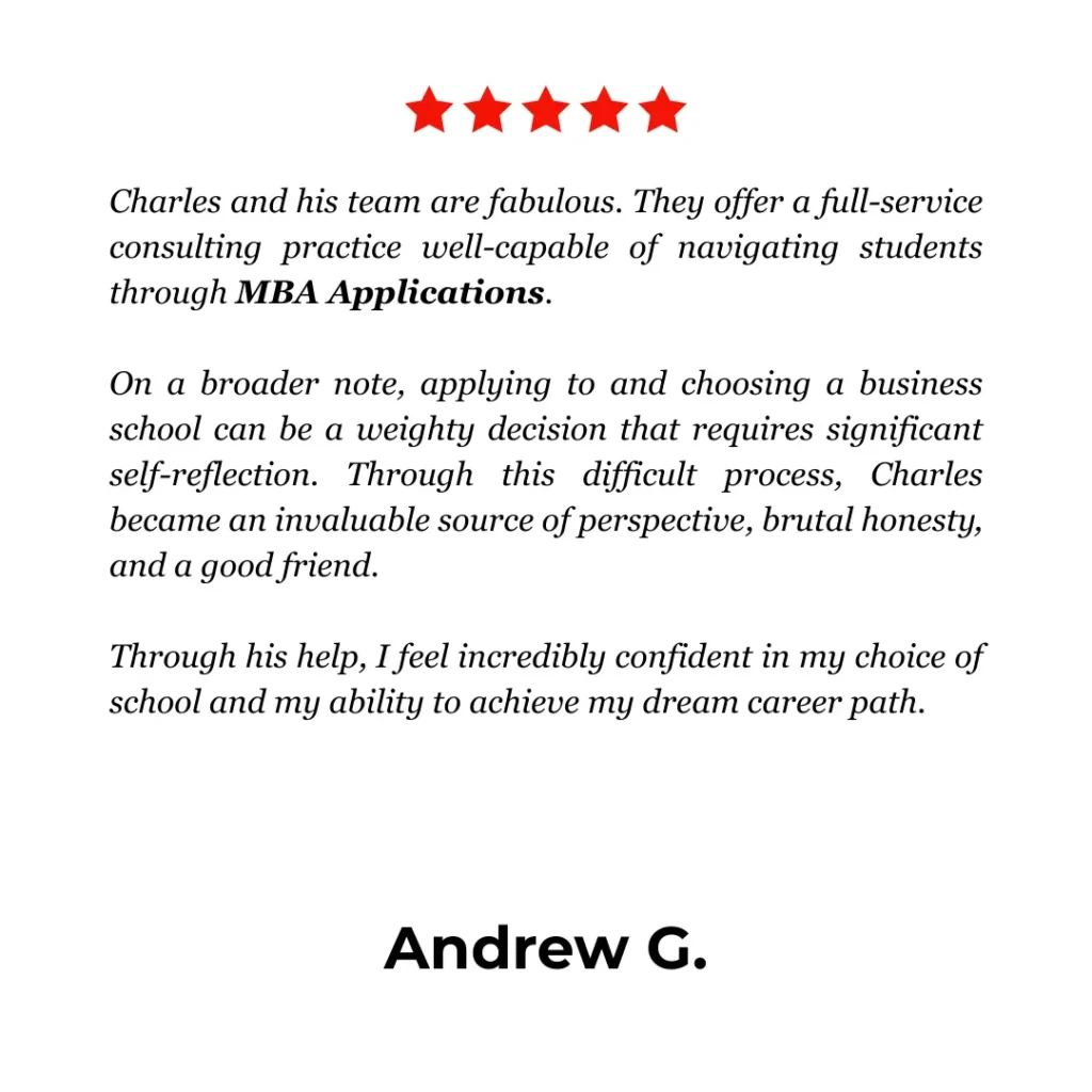 We won’t tell you what you want to hear. If your school list is unrealistic, we’ll say so. If your essays are generic, we’ll push you to make them better. Our job isn’t to sell you more hours. It’s to give you the clearest, most direct path to admission at the right MBA program for you.