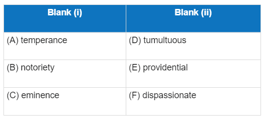 For blank (ii), we’re trying to echo the idea that Caravaggio’s increasing success (or eminence) brought out his worst traits (vain, prone to violence). So which of these three would fulfill that role?