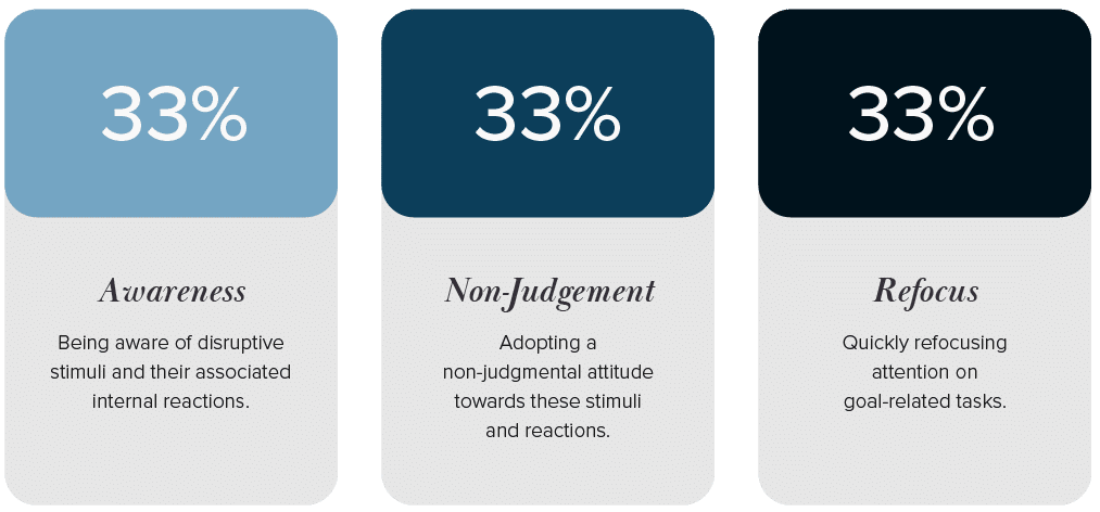 Mindfulness is a nonjudgmental awareness of your moment-by-moment thoughts, feelings, and physical sensations. This awareness allows you to react to difficult situations in ways that help you achieve your goals.